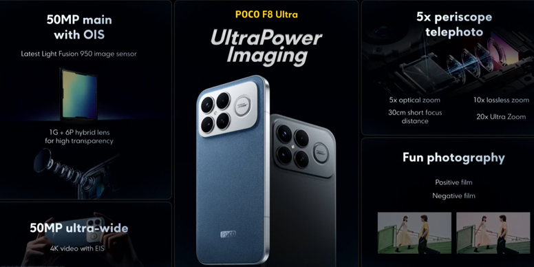 В POCO F8 Ultra используется тройная камера с тремя 50-мегапиксельными сенсорами, и в данном случае это не попытка впечатлить цифрами. Архитектура системы продумана, а главное — все модули действительно функциональны. Poco отказалась от формальных объективов «для галочки», сделав каждый из них полезным в реальной съёмке.