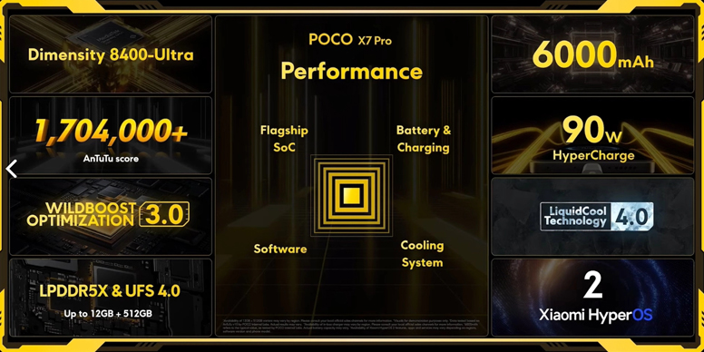 Poco X7 Pro — это глобальная версия Redmi Turbo 4, и он представляет собой более интересную альтернативу базовому X7. В отличие от большинства конкурентов в линейке Redmi Note 14, у X7 Pro нет прямого аналога, что делает его более уникальным предложением. Это смартфон с отличным соотношением цены и качества, а его технические характеристики привлекают внимание. Он значительно улучшился по сравнению с предыдущей моделью X6 Pro, и это, безусловно, заметно. Одним из главных преимуществ является класс защиты от пыли и воды IP68 (а в некоторых странах, например в Индии, доступен и вариант с IP69), что делает серию X7 первой в линейке Poco с полной защитой от воды. Смартфон также оснащён новым процессором Dimensity 8400 Ultra, который отличается высокими тактовыми частотами и улучшенной графикой. Кроме того, улучшенная система охлаждения, обеспечивающая стабильную работу устройства, тоже заслуживает внимания.