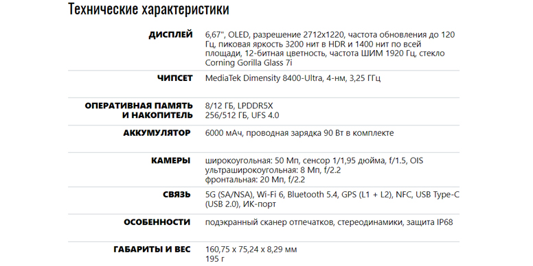 Что касается зарядки, комплектный адаптер мощностью 90 Вт позволяет зарядить смартфон с 0 до 38% за 10 минут, а полная зарядка занимает около 40 минут.