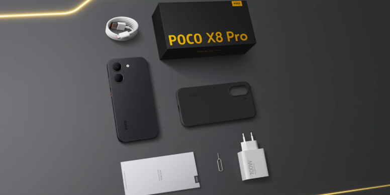 POCO X8 Pro поставляется с полным набором аксессуаров: в коробке есть защитный чехол, мощный адаптер быстрой зарядки на 100 Вт, кабель USB-A — USB-C, инструмент для SIM-карты и документация.