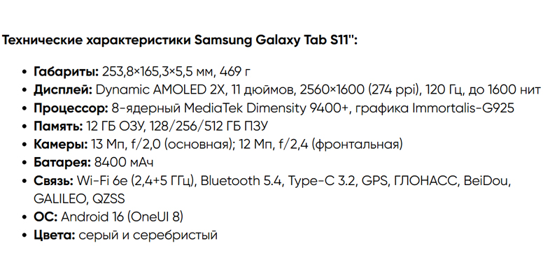 Samsung Galaxy Tab S11 - планшет без компромиссов